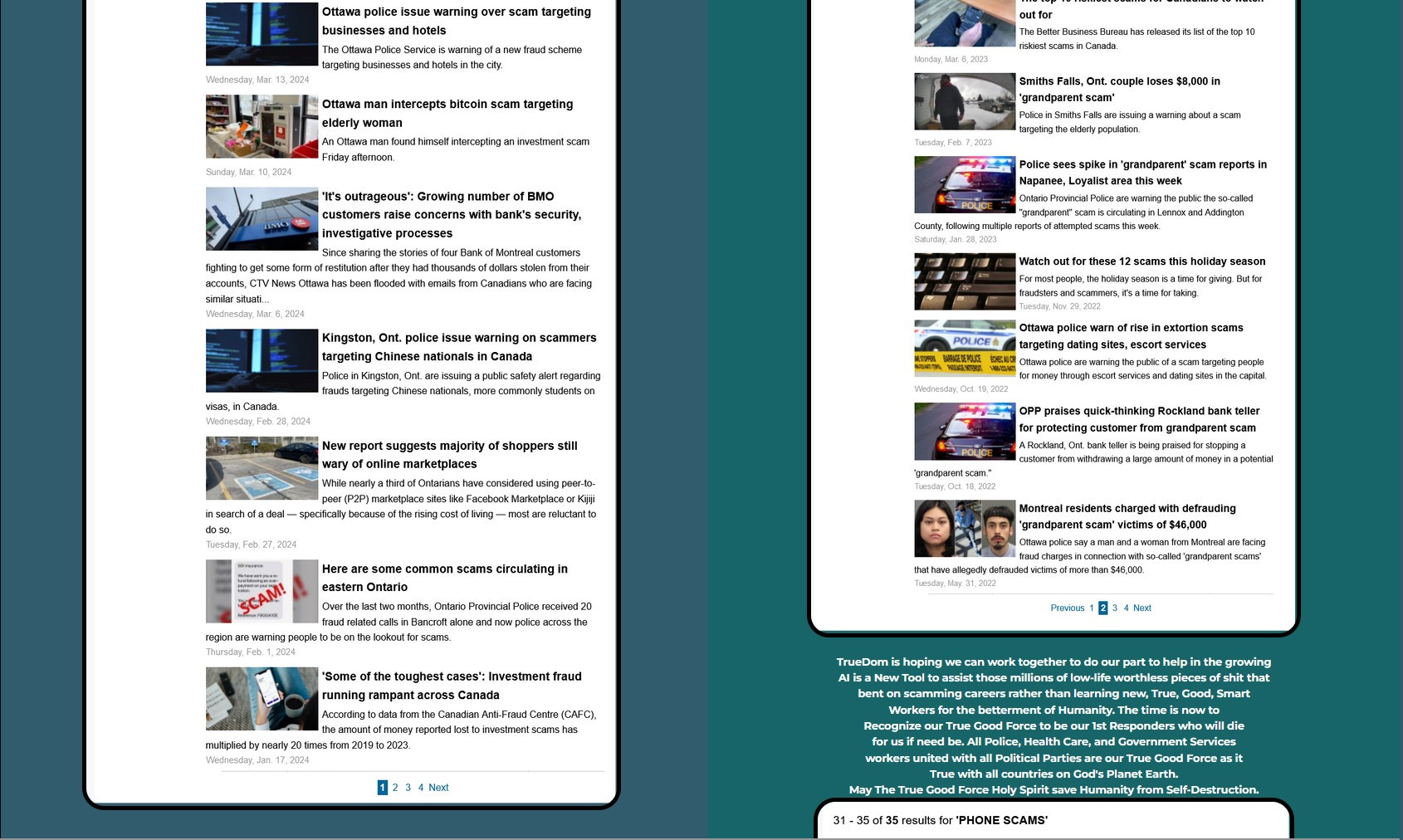 Welcome to our website, truefraudphonebusters.truecnn.ca. I desire to help stop Fraud Phone Scams on the Wild West Web.